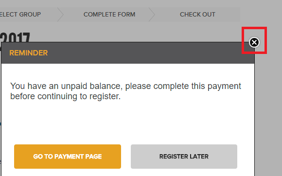 If a pop-up stating that an unpaid balance must be paid prior to registering appears when registering for a new program, follow steps below: